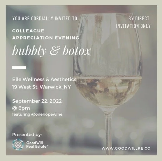 Join me for an evening of appreciation and pampering at the vibrant new offices of Elle Wellness and Aesthetics (@elle_aestheticsny) in the heart of Warwick at 19 West St, Warwick, NY, on September 22, 2022, starting at 6 pm.