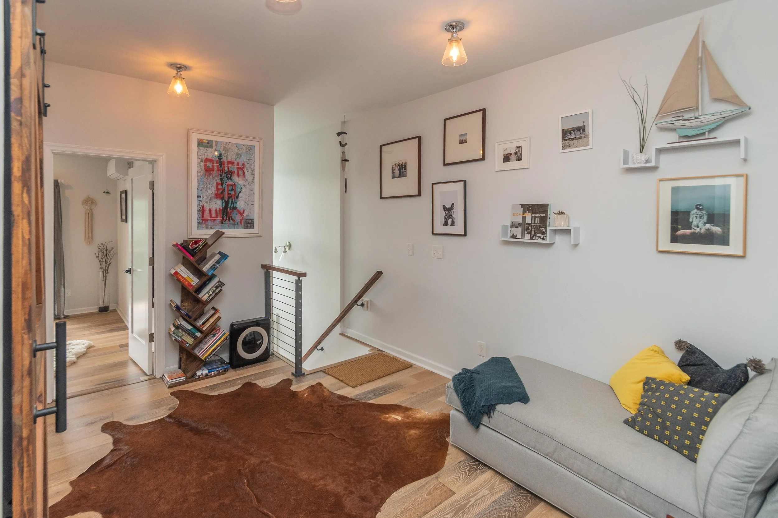 The main level of the house includes three-generous bedrooms with 10’ high ceilings, including a 210sf primary bedroom with a 20-foot wide French balcony with views facing the lake and the most stunning sunrises each morning.
